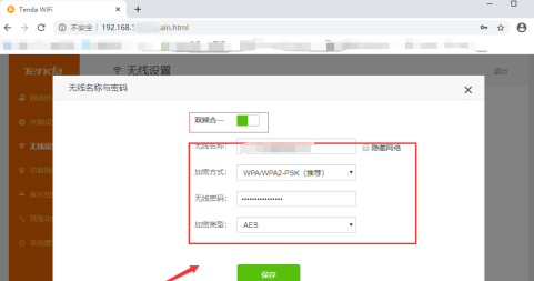 6)然后输入无线网络名称和密码,点击保存