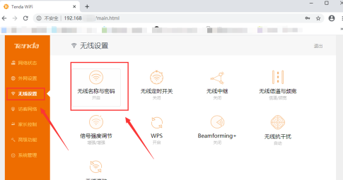5)192.168.49.1路由器设置双频WIFI,选择左侧无线设置,点击“无线名称与密码”。